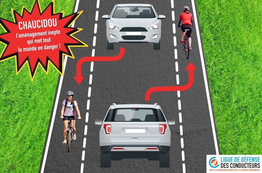 « chaucidous », nos sympathisants nous contactent pour en savoir plus sur ces aménagements qui fleurissent sur les routes de France. Si ces derniers sont censés rester exceptionnels, l’obligation d’instaurer des pistes cyclables imposée par la loi LOM entraine leur prolifération aux quatre coins du pays… engendrant souvent stupeur et frayeur, alors qu’ils sont supposés améliorer la cohabitation sur la route des voitures et des vélos.